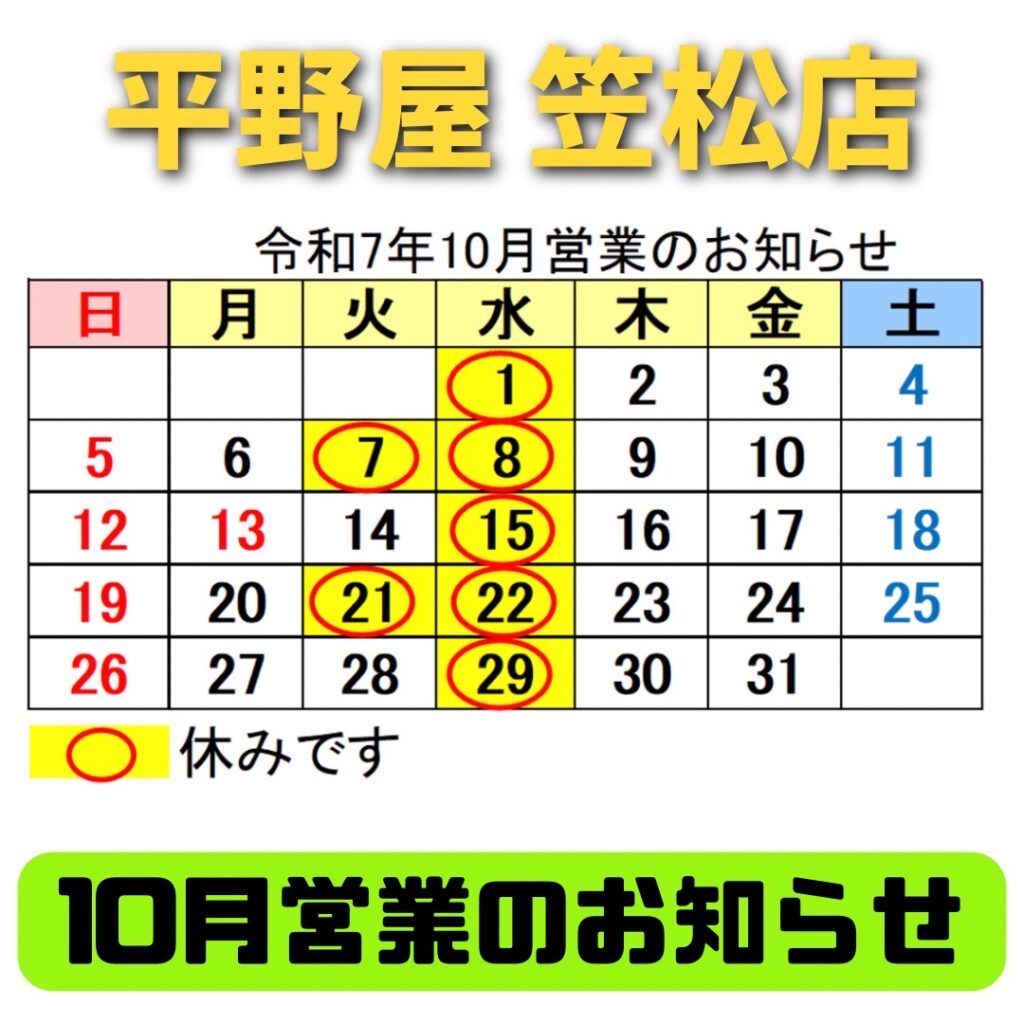平野屋 笠松店より10月営業のお知らせです- ̗̀📣